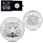 This is an Unbelievable Add to Your Collection - Only 2,500 minted ULTRA HIGH RELIEF 2022 Chad 1 oz Silver Multifaceted Tiger Ultra High Relief Coin! This captivating coin contains 1 troy ounce of .999 fine silver, with a face value of 5,000 Francs CFA. Each silver tiger coin boasts an amazing ultra-high-relief finish with multifaceted angles and arrives inside a special colorful tiger-themed box. Created in honor of this year’s zodiac animal, this coin celebrates the “Tigers” in our lives. People born during this lunar year tend to be charismatic, organized, and passionate . The obverse depicts the Republic of Chad coat of arms in front of a stunning geometric background. The reverse side showcases a close-up, detailed image of a tiger staring straight ahead at the viewer with piercing eyes. The multifaceted surface reflects the light at different angles. Coin Specifications: Limited Mintage of 2,500 COA number on side of coin Multifaceted surface that reflects light at various angles Made from .999 fine silver with a weight of 1 troy oz Ultra High Relief finish Face Value of 5,000 Francs Legal Tender authorized by the Republic of Chad Obverse: the Republic of Chad coat of arms in front of a geometric background. Inscriptions: “5000 FRANCS CFA”, “REPUBLIQUE DE TCHAD”, and “2022”. Reverse : A close-up, detailed image of a multifaceted tiger staring directly at the viewer. Inscriptions: “1 OZ .999 FINE SILVER”, and “TIGER”.