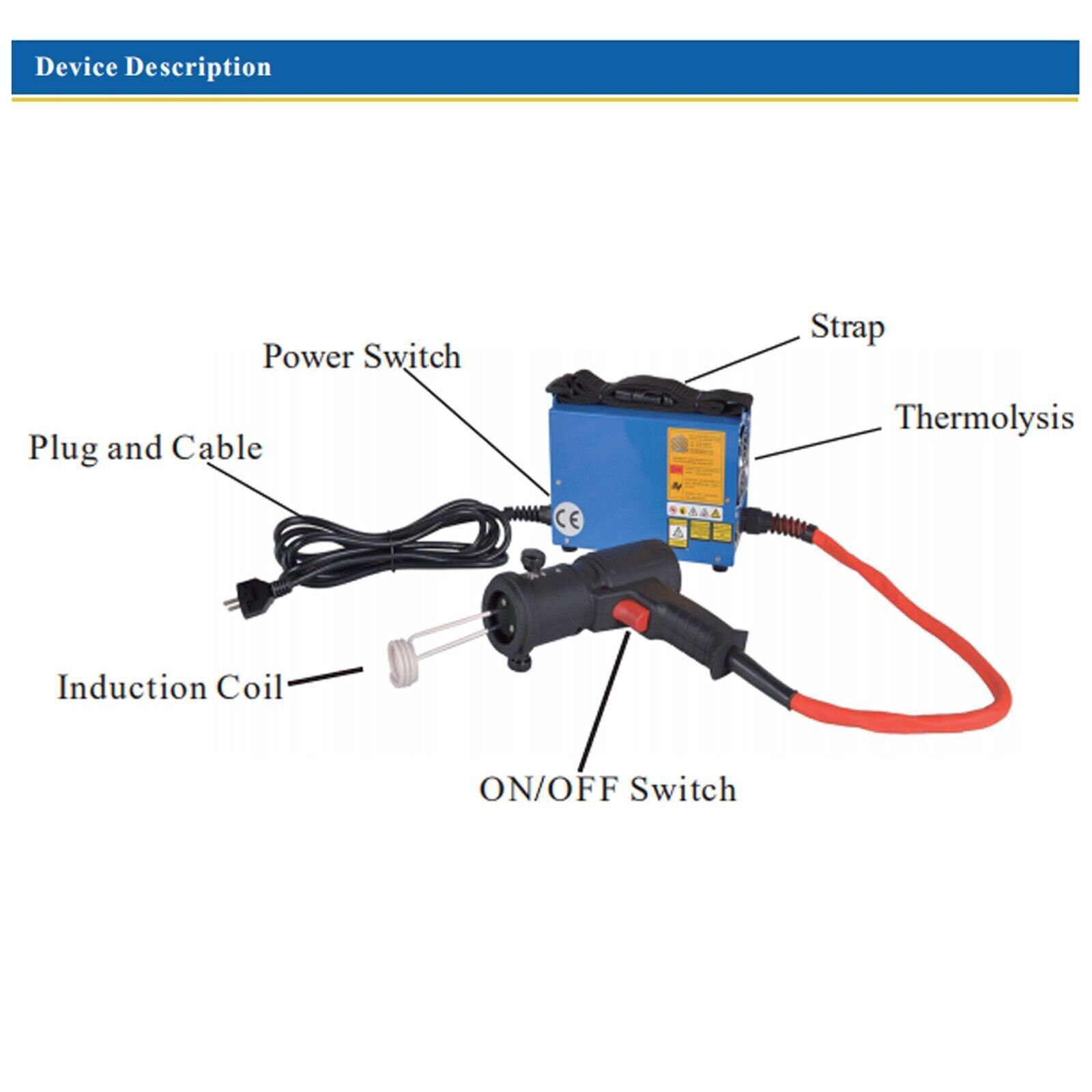 Voltage: 110V Rated Power: 1500W (Note: Working power changes as the heating element size changes) Illumination: LED Light Heating time: Continues up to 6 minutes. (From normal temperature to protection switch-off temperature) Heating capacity reference: Heating 10 bolts from 25°Cto 300°C. Recommended Heating Temperature : 200-700°C. Bolt Diameter: Φ10-22mm, Φ23-28mm, Φ29-36mm, Φ37-40mm Functions: Heating rusted bolt nut, by the purpose of fast and easy remove from machines, cars etc. Using the thermal expansion theory, when the nuts of the bolt is heat, it expands which makes it easy to be removed from rusted bolt. If you need to use this device to others applications, please contact local dealer for support, any inappropriate operation may cause damage to the device. Operation Steps: 1.Release the 2 fixing bolts contraclockwise 0.5cm out. 2.Select appropriate size of coil for your work and insert the two ends into the front holes. 3.Twist the bolts clockwise to fix the coil tightly. Plug in and place the heating element in the center of the coil, then press & hold the red button, the light in front will illuminate in 2-3 seconds. At the same time, the heating elements' temperature raises, when work is done, release the button, and put it in safe storage. Use Rules: This device is built in the over heat protection, it will shut itself off to prevent damage from overheat, you can use it after the temperature drop to normal . Please try not to use it over 5 minutes one time, although the device is built in the over heat protection, however, life spam of the device may be reduced. During use, please place the coil in the center of bolt/heating object, try not to reach or close to large metal part where you don’t need to heat), otherwise the working load increases and slow down heating speed of bolt. Please refer to Pic 4. When the white coil insulation is breach, please replace with new insulation pipe, or replace the coil, if you have to use it, please not use it in the way of Pic 1, Pic 2. (Breach of insulation pipe may lead to short circuit of coil, thus may cause irreversible damage to the heater) Do not block the vent holes during working, otherwise cooling ability decreases, and cause overheat to the device very soon. Please don't put this device in fridge, near the air conditioner vent, this may cause condense water inside of the device and may damage the board. Please don’t bend the power cord sharply, no matter in using or storage. Please don’t open the device by yourself. Package includes: 1pc of Magnetic Heater 4pc of Coil 1pc of User Manual Payment Policy We accept PayPal ONLY currently. Payment must be made within 3 business days. Shipping Policy 1. Item will be shipped within 1-3 business days from US Stock according to the item location. 2. Sometimes the ship date will be delayed due to a shortage. We will inform you via message. 3. Please leave available address and phone # in delivery information. Seller are not responsible for wrong address. 4. Please indicate your personal requirement such as colors, packages, value of declaration etc. at PayPal's message when make payment. 5. We will NOT responsible for any delay during delivery including but not limited to customs postage checking, strike, force measure etc. Returns Policy Returns are accepted within 30 days. Please read the item description and check the pictures carefully before bidding. Return or refund is available only if item DOA or there's error in item description causing the item not fitting your need. In such cases, seller pays for all related shipping cost if any. Returns are also acceptable if buyer purchased this by mistake and item still in good condition for reselling. Buyer is responsible for all related shipping cost.