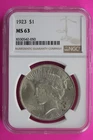 1923 P MS 63 Liberty Peace Silver Dollar NGC Certified Authentic Graded Slab 135