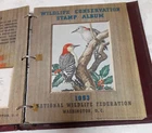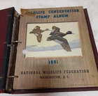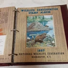 Thru 1951 -1959 this collection of stamps was gathered and put in the binder. The information on these stamps is very informative and useful.to any nature lover. A great piece for a nostalgic collection. This collection covers 9 years and are all included in the package deal with the binder. This collection was initiated by The National Wildlife Federation , Washington D.C. with the objective to encourage the intelligent management of the life sustaining resources of the earth. The actual binder could use a bit of reinforcement, but is still functioning, I would tape it, but the authenticity may be desired. This binder measures 12 inches by 10 inches and 2 inches wide on the bound side when closed. Thanks for looking. I apologize for the shadow in the pics.