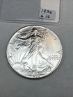 This product is a 1986 Uncirculated Silver American Eagle coin, minted by the U.S. Mint. It contains 1 oz of 0.999 fine silver. The coin features a business strike type and is ungraded and uncertified. It is a valuable piece for collectors and investors alike.