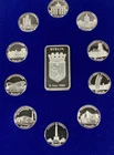 THIS IS A GREAT COMMEORATIVE COIN AND BAR SET OF THE FALL OF THE BERLIN WALL. .999 PURE SILVER DEPICTING LANDMARKS ( frame is 7.25" x 5.5" ) 10 COINS / 1 BAR EXCELLENT CONDITION OTHER THAN A FEW MINOR SCUFFS /SCRATCHES PLEASE EXAMINE PICTURES CAREFULLY FOR CONDITIONN AND SPECIFICS THANKS.,