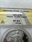 1991-S American Silver Eagle $1 ANACS PF 69 DCAMEO