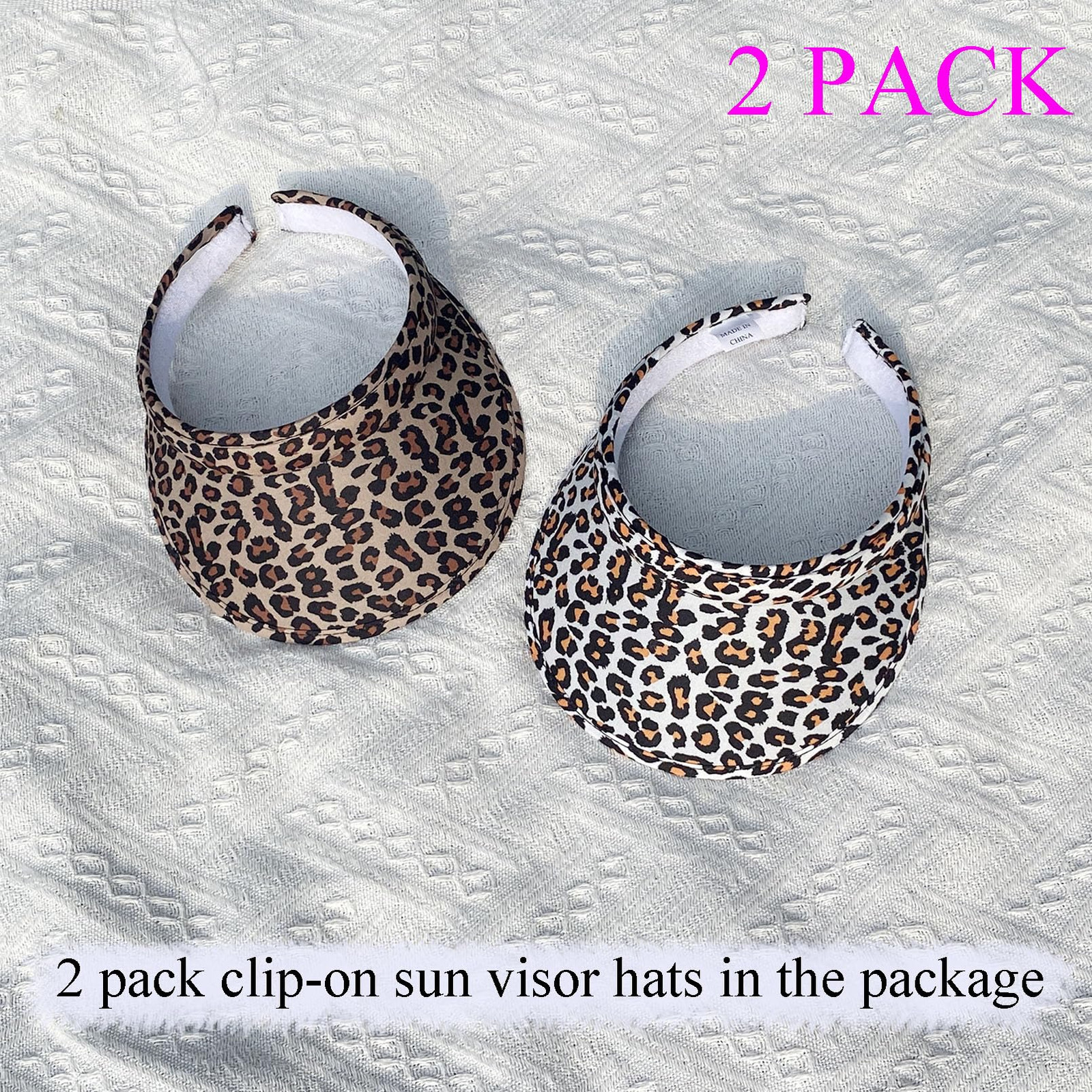One Size Fits Most Head circumference : 21.25-22.83 inch. Wide Brim: 3.1 inch 2 PACK: There are 2 pack clip-on sun visor hats in the package. Multiple Colour:These visor hats for women have balck , white , blue , navy , khaki ,green, maroon, hot pink. These sport visor hats are comfortable, and if you don't want to take time to fix your hair, put one on and go! Wearing Perception:These open back visors for women men are comfortable fit, stylish look, retro appearance, light weight, adjustable design. Classic accessories:Whether you are in the gym, for golf and yard work outdoor activities or leisure and entertainment. Use fashionable sports cotton twill golf sun visor to enjoy and protect yourself on sunny days.