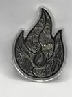 The product is a 2 oz silver Stacker Eternal Flame coin with a fineness of 999. It is minted by Today LTD and comes with certification. The item has dimensions of 7" in height, 7" in length, and 5" in width, with a weight of 1 oz. The design features an eternal flame motif.