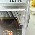 2022 PANINI SELECT LA LIGA FRENKIE DE JONG JUMBO SWATCH GOLD /10 MINT PSA 9 - This rare sports trading card features soccer player Frenkie de Jong from La Liga in a limited edition Gold parallel variety. With a Jumbo Swatch design, this card is a must-have for collectors and fans alike. Graded PSA 9, this card is in mint condition and comes with a unique SKU for authenticity. Add this valuable piece to your collection today and showcase your love for the sport and the player. POP1 None higher