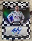 This 2023 Panini Prizm trading card features Alex Bowman, a NASCAR driver for Hendrick Motorsports. The card is an autographed, serial numbered, and limited edition Scripts Checkered Flag Prizm variant, with a print run of only 50. The card is a must-have for fans and collectors of auto racing memorabilia. It comes from the 2023 Panini Prizm set and is signed by the driver himself. The card number is S-ABW and it belongs to the category of Trading Card Singles, Sports Trading Cards, and Sports Mem, Cards & Fan Shop. Get your hands on this rare and valuable card today!