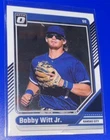 This 2024 Donruss Bobby Witt Jr. Optic baseball card is a must-have for any collector or fan of the Kansas City Royals. The card features a hologram, exclusive design, and is a limited edition item. It is part of the Optic Blue Velocity Prizm insert set and is a 1st edition card. The card is in standard size and manufactured by Donruss. It is a sports trading card and features Bobby Witt Jr., a rookie player for the Kansas City Royals. The card number is 1 and it is from the 2024 season. This card is perfect for those who are looking for a valuable addition to their collection or for those who want to show their support for the Kansas City Royals.