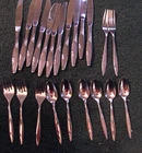 22 used matching Oneida Rose Duet pieces. 11 dinner knives,2 dinner forks,3 salad forks and 6 teaspoons. Good used shape,some nomal scratching and use wear. See pics for condition. See photos for condition.Photos are considered part of the condition and description.If you are buying multiple items,save them in your cart and make one payment and they will ship together and ask for reduced shipping on multiple items that can ship together. USPS sets shipping prices and we always send cheapest unless requested otherwise. Shipping prices are non negotiable. We DO NOT ship to any other address besides your approved shipping address on ebay and our labels are printed from the same. We ship to the USA ONLY. All items will be shipped out the next day.(not including weekends and holidays) ASK QUESTIONS,DO NOT ASSUME.IF IT IS NOT IN THE DESCRIPTION AND PHOTO ,IT IS NOT INCLUDED. If an item is listed as untested,as is,or for parts or repair it is sold "as is" and assume it does not work. We ship USPS and Fed ex only.Fed-ex does not ship to PO boxes. When you are satisfied with your purchase leave positive feedback and you will automatically receive the same. Z21
