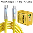 Description: 240W fast charging is universal High power to low power 240/140100/60/30W device data cable is fully compatible Multi-protocol full device support can be switched between mobile phones, tablets and other devices 240W fast charging PD full series compatible Support iPhone7-iPhone15 Samsung and other mobile phones compatible Colorful atmosphere lights make night charging more convenient With soft colorful atmosphere lights, you can clearly find your phone when charging at night Zinc alloy material anti-oxidation process Plug and unplug at will, intact as new, full of texture Bend at will, long-term use without breaking After 20000+ Bending test, wear-resistant and non-breakage, longer service life Thickened gold-plated copper wire, faster and more stable charging Increased conductive area, reduced resistance, smoother charging and transmission, more stable and faster Product name: liquid silicone data cable Interface: Type-C/USB-A/8pin Function: charging + data transmission Material: zinc alloy + liquid silicone Transmission speed: 480Mbp/s Current: 2.4A/5A Length: 1.5m Color: yellow Applicable models: Applicable to Apple/Android/Type-C interface devices Includes: 1 1.5m 240w liquid silicone data cable