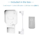 256GB Flash Drive and Outlet Wall Mount for Blink Sync Module 2 The outlet wall mount is with both Blink Sync Module and Blink Add-On Sync Module 2. (Blink Sync Module 2 Itself is NOT ) Lightweight 256GB Flash Drive The USB Flash Drive is made of high-quality alloy, plug and play, more convenient to view, share, and download locally stored from blink outdoor cameras. Reduce Clutter Cable With the custom short USB power cable, you can install your Blink Sync Module 2 on the wall in a small space. Easy to Install This outlet wall mount can be easily moved to anywhere you need. No tools required and no wall damage. Secure Device Safely Hold and protect your Blink Sync Module 2 stably with buckle design. The clips are tight while it is easy to remove. Package Includes: Outlet Wall Mount for Blink Add-On Sync Module 2 x 1 pack 256GB Flash Drive x 1 pack Short Power Cable x 1 pack Lightweight Flash Drive:Made of high-quality alloy with 256GB capacity, plug and play, more convenient to view, share, and download locally stored from blink outdoor cameras. Neat and Save Space:With this compact outlet mount, your Blink Sync Module 2 installation is more neat and clean than before. The extra custom short USB cord will help you out of the messy wires. No Drilling or Tools Needed:Requires no tools, screws or drilling in your walls. You can install your Blink Sync Module 2 in seconds. No damage to your house and control Blink Indoor, Blink Outdoor, XT2, XT conveniently. Flexible Installation:Allowing you to move from place to another easily. Any open AC outlet can be a perfect place to hold the sync module. You will have no need to specially make room for this small block. Secure and Stable:Made of high quality hard plastic, hold and protect your Blink Sync Module 2 stably with buckle design. (The Blink Sync Module 2 and plug are NOT .)