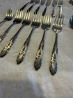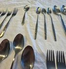 This 29 piece mixed lot consisting of mostly half and half Oneida floral bouquet and Wm Rogers Malibu flatware plus one single spoon with a rose pattern on the handle (still Oneida but unsure of the name of this style) Lot features various utensils such as knives, forks, spoons… This traditional and beautiful style flatware is perfect for all occasions! Can be used for anyone with the love of flowers and Oneida brands, or even for crafts. Whatever your heart desires! Each piece may have surface scratches or slight tarnish but is overall in good condition! Lot includes: 6 smaller forks FLORAL BOUQUET by Oneida 6 larger forks FLORAL BOUQUET by Oneida 3 larger spoons FLORAL BOUQUET by Oneida 1 scalloped shaped spoon FLORAL BOUQET by Oneida 3 Narrow, Long, (stir?) spoons MALIBU by Wm Rogers Oneida 2 larger spoons MALIBU by Wm Rogers Oneida 1 smaller spoon MALIBU by Wm Rogers Oneida 1 larger SLOTTED spoon MALIBU by Wm Rogers Oneida 2 larger forks MALIBU by Wm Rogers Oneida 3 smaller forks MALIBU by Wm Rogers Oneida 1 spoon with a ROSE handle, also by Oneida. 29 pieces total! See ALL pictures!! Great collection of beautiful flatware!