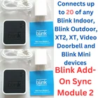 2-PACK Blink Add-On Sync Module 2 (up to 20 cameras) *** works with the Outdoor 4th/3rd/XT and Indoor Gen cameras *** Conveniently control all of your Blink devices right from the Blink Home Monitor app with the Blink Sync Module 2 . Each Sync Module 2 connects up to 10 of any Blink Indoor, Blink Outdoor, XT2, XT, Video Doorbell and Blink Mini devices (not required for Mini) . Supports local video storage for up to 10 Outdoor, Indoor, Video Doorbell and Mini devices. Record and store motion clips when you insert a USB flash drive (up to 256 GB – sold separately) into the Blink Sync Module 2. Does not support live view recording. View, share, and download locally stored motion alerts from Outdoor, Indoor, Video Doorbell and Mini devices through the Blink app anytime or watch the footage on your computer by plugging in the USB flash drive (sold separately). No monthly fees are required to use local video storage functionality. Local video storage functionality is not compatible with Blink XT2, XT, and 1st generation Indoor cameras.