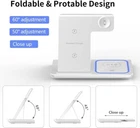 3-in-1 Wireless Charging Station: You can charge your apple products simultaneously with this 3-in-1 wireless charger stand. It charges your iPhone, iWatch and AirPods at the same time.Powered by QC3.0 adapter (INCLUDED), the charging stand outputs up to 10W for phones, 5W for AirPods, 2.5W for iWatch. . Safe Wireless Charger: The fast wireless charging station provides you a safe charging experience. It adopts over-current protection, over-voltage protection, over-charging protection techniques, and massive heat dissipation holes, ensuring your charging safe & secure. . Adjustable & Foldable Charging Stand: Designed for your convenience, this wireless charging station is adjustable with 2 gears and foldable for carrying around. You can also charge your phones vertically while browsing apps (Instagram, TikTok, Facebook, etc.) and horizontally while watching movies. It suits your office desk, end table, and bedside desk perfectly. . Advanced smart protection: The 3 in 1 wireless charger uses high-efficiency components and advanced chipsets, and the dual-coil design greatly improves the charging speed of the device. Control, foreign body detection, etc, you and your products will be fully protected. . No longer need a lot of wires: The 3 in 1 wireless charging station can reduce your charging cable on your desk for different devices, only need one cable, save place and look neatly. Easily install and conveniently to use. Just put your device in the right charging place and insert the cable. Features Specifications: Input Voltage/Current: DC 9V-2A Wireless Output for Phone :5W/ 7.5W/10W /15W Max. Wireless Output for Airpod: 5W Max. Wireless Output for iWatch: 2W Max. Material: ABS+PC Fireproof Material What You'll Get 1*3 in 1 Wireless Charger 1*Type-C Power Cable 1*QC3.0 adapter 1*User Guide Compatible Models: 10W Fast Charge Mode (with Quick charge 3.0 adapter) - Samsung Galaxy S25/S24 /S23/ S21/ S20/ S10/ S10 Plus/ S10e/ Note 10 - Samsung Galaxy S9 Plus/ S9/ Note 9 - Samsung Galaxy S8/ S8 Plus/ Note 8 - Samsung Galaxy S7/ S7 Edge/ S6 Edge Plus/Note 5 7.5W Fast Charge Mode for iPhone series: iPhone 15/15 Plus/15 Pro/15 Pro Max iPhone 14 Pro/14 Plus/14 Pro/14 Pro Max iPhone 13/13 Plus/13 Pro/13 Pro Max iPhone 12/12 Plus/12 Pro/12 Pro Max iPhone 11/ 11 Plus/11 pro/ 11 Pro Max/ XS/ XS Max/ XR/ X/ 8/ 8 Plus (Not for iPhone 12 Mini/13mini) 5W standard charging (Using 5V/2A adapter): all wireless devices. Apple Watch Series SE/ 9 / 8 / 7 / 6/ 5/ 4 / 3 / 2 / 1 and Other Wireless Devices. AirPods 2/3/Pro/Pro 2(Wireless charged,do not need extra cable). Specification: Input:12V/2A, 9V/2.7A Phone Output:15W-7.5W-10W-5W Earbuds output: 2.5W Conversion efficiency: 73% Specification and size: 5.35*4*5.35 inches