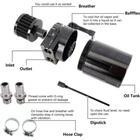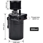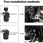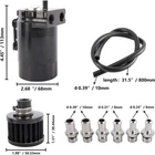Installation: 1. Remove the car hood. 2. Take the tube away and set it aside. 3. Wrap non-slip tape around the threaded part of the screw. 4. Place the screw on the oil collecting tank. 5. Use your own nuts and bolts to secure the bracket to the device. 6. Remove the screw from here, and then place the oil collecting groove in the same screw position. 7. Take a new hose and cut it to the length you think is suitable. 8. Clamp the clamps on both ends of the pipe and hose. Package included: 1X Oil Catch Can 1X Air Filter As the picture shown Specifications: Material:Light-Weight Aluminum Color: Black FUNCTIONS: Collect steam from the crankcase, reduce the amount of steam entering the intake branch. Reduce carbon deposition. The baffle could cool hot oil vapor and turn into liquid, catch the oil and vapor. Can better protect the engine. The catch can will keep out the dirt and oil get inside your engine from your intake system. The catch can kit can keep the engine clean, increase horsepower and extend engine life. Installation: 1. Remove the car hood. 2. Take the tube away and set it aside. 3. Wrap non-slip tape around the threaded part of the screw. 4. Place the screw on the oil collecting tank. 5. Use your own nuts and bolts to secure the bracket to the device. 6. Remove the screw from here, and then place the oil collecting groove in the same screw position. 7. Take a new hose and cut it to the length you think is suitable. 8. Clamp the clamps on both ends of the pipe and hose. Package included: 1X Oil Catch Can 1X Air Filter As the picture shown