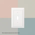 From , the Stepped Geometric wall plates have an informal style with soft lines and modest stepped details. Decorative outlet covers are a simple way to elevate your home decor. This multi-pack of single outlet covers is great for replacing your current covers, or for new construction. We offer a variety of wall plate configurations with on-trend designs and finishes. CONFIGURATION: 1-gang duplex/outlet wall plate cover FINISH: Pure white is a fresh, bright white MULTI-PACK: 3-pack outlet covers made of plastic and zinc plated steel STYLE: Add a decorative accent to any room with this stylish design WARRANTY: Confidently backed by a Limited Lifetime Warranty
