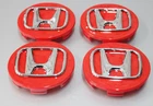 (4) Honda RED Wheel Rim Center Caps ACCORD CIVIC CRV 69MM/2.75 Sold as a set of 4. ACTUAL PICS OF THE CAPS ARE SHOWN. Please make sure this will fit your honda, Will fit many models Item Specs Material: Premium Quality Automotive ABS Finish Measurement: Direct OEM Fitment - 69mm / 2.75 Inches PLEASE UNDERSTAND THAT MANY DIFFERENT YEARS, TRIMS, AND MODELS MAY HAVE DIFFERENT SIZE OEM WHEELS WHICH MAY REQUIRE A DIFFERENT SIZE CENTER CAP. PLEASE ENSURE THIS IS THE CORRECT SIZE BEFORE PURCHASING. THANKS. Recommended Vehicles Accord (2003-2015) Civic (1999-2015) CRV (2005-2014) Pilot (2003-2015) Element (2003-2011) CRZ (2011-2016) Ridgeline (2006-2014) Please confirm by part number whether or not it will fit your vehicle. Part Numbers: 44732SA9AA00 44732-S9A-A006-1 44732-S0X-A000 44732-S9A-A00 44732-S0X-A01 44732-S7S-J01