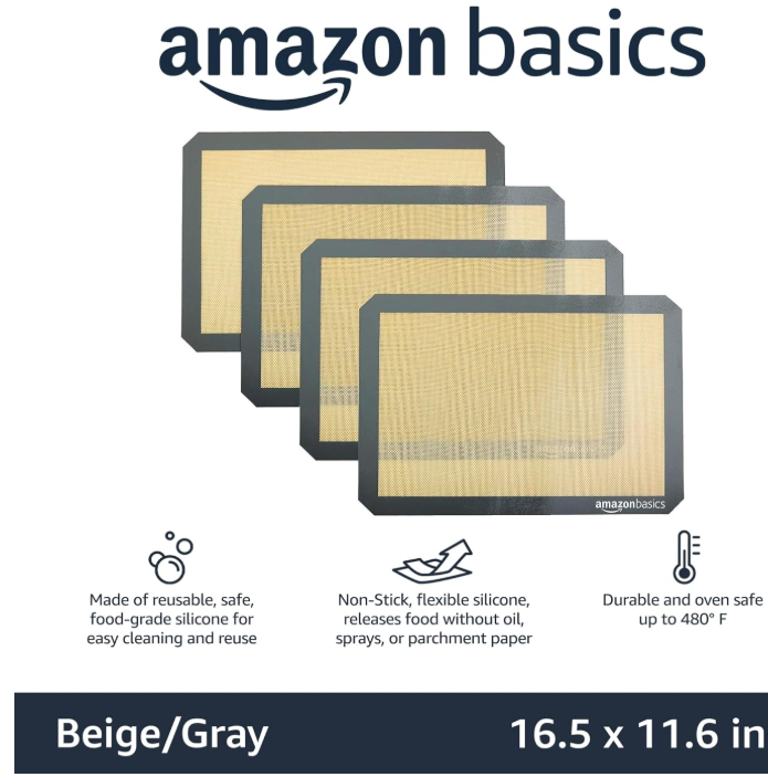 *No exchange, No Refund* Heat‑resistant, flexible, non‑stick silicone mats perfect for baking cookies, pastries, or bread. Dishwasher-safe and eco-friendly alternative to foil or parchment. Baking mat (4-pack) for easy and convenient baking, roasting, or food prep. Oven-safe up to 480 degrees F; use with a baking tray for support; do not put baking mat directly on oven rack. Ships Free from US