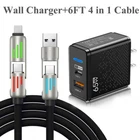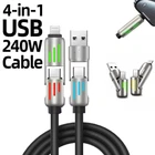 4 in 1 USB C Cable 240w Fast Charging & Data Sync Multi Silicone RGB Charge Cord