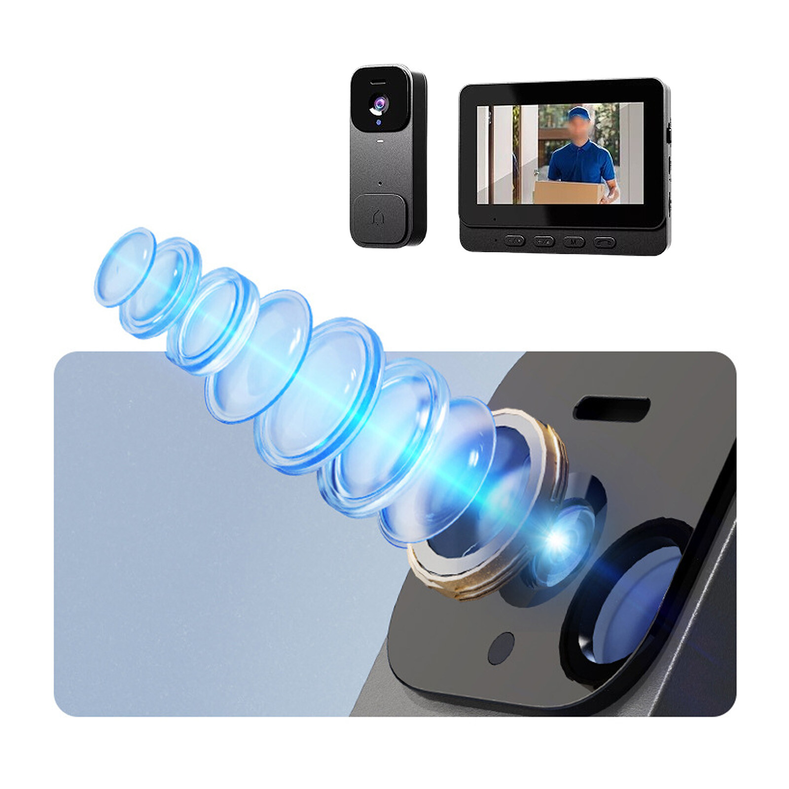 Product Detail: Note:If you have any questions, please contact us before open any case, we promise will solve the problem for you. Thanks! Features: *4.3-inch Large Screen: Easily view the situation outside the door with a clear glance, no need to fix it behind the door, allowing freedom of movement. *Long Battery Life: Built-in large-capacity lithium battery, ultra-long battery life. It is recommended to use the screen with power plugged in, and the continuous use time of the screen without power plugging in is: 2H. *High Definition Video: Utilizing 300,000 high-definition pixels, it provides clear and detailed recordings of visitors' faces and items at the door. *Wireless Two-Way Intercom: With a 2.4G wireless signal, the doorbell and display screen can communicate in real-time, eliminating the need for wiring or WiFi. *Easy Installation: The device can be easily installed without the need for drilling holes and supports both and punching installation methods. Specifications: *Product Name:Smart video doorbell *Material:ABS *Size:Doorbell: 107*42mm, Display: 120*95mm *Color:black *Battery capacity: doorbell 800mAh, display 400mAh *Charging method: TYPE-C charging *Power supply voltage: 5V 1A *Display: 4.3 inches Package Content: 1 x Doorbell 1 x Display 1 x Charging cable 1 x Mounting sticker 1 x Screw 1 x Instruction manual Note: 1. The real color of the item may be slightly different from the pictures shown on website caused by many factors such as brightness of your monitor and light brightness. 2. Please allow slight manual measurement deviation for the data. Note: 1. Please allow minor deviation due to manual measurement. 2. Due to the difference between different monitors, the picture may not reflect the actual color of the item. 3. Communication is the best way to solve the problem. If you have any problems after purchasing, please contact us in time, before opening return or case. Payment: We accept PayPal ONLY currently. Payment must be made within 3 business days. Shipping: 1. Item will be shipped within 1-5 business days from CN Stock or US Stock according to the item location. 2. Sometimes the ship date will be delayed due to a shortage. We will inform you via message. 3. Please leave available address and phone # in delivery information. Seller are not responsible for wrong address. 4. Please indicate your personal requirement such as colors, packages, value of declaration etc. at PayPal's message when make payment. 5. We will NOT responsible for any delay during delivery including but not limited to customs postage checking, strike, force measure etc. Customs Declaration: Import duties, taxes and charges are not included in the item price or shipping charges. These charges are the buyer’s responsibility. Please check with your country’s customs office to determine what these additional costs will be prior to biddingying. Return & Refund: Returns are accepted within 30 days. Please read the item description and check the pictures carefully before bidding. Return or refund is available only if item DOA or there's error in item description causing the item not fitting your need. In such cases, seller pays for all related shipping cost if any. Returns are also acceptable if buyer purchased this by mistake and item still in good condition for reselling. Buyer is responsible for all related shipping cost. Feedback: As long as you are happy with your purchase, please kindly leave us for it is very important for our store performance. If there is any problem with your order, please contact us and give us a chance to resolve your problem Before leaving us a negative feedback.