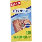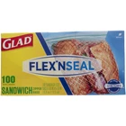 5 Pack Glad FLEX N SEAL Sandwich Zipper Bags, 16.8 cm X 14.9 cm, 12 oz, 100 Ct