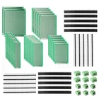 ★ High Quality set of bare PCB with the etched FR4 glass-epoxy circuit board; ★ Solder-able Circuit Protoboards for DIY Electronic Project; 2/3Pin Plug-in Screw PCB Terminal Block Connector; Fit to all sorts of prototype and production PCBs ★ Quality certified; With this proto board you will be able to create or incorporate unique projects into a reliably weatherproof enclosure. ★ Wonderful selection of PCB boards which fit to various electronic projects; With thickness of 1.6 mm and standard 0.1" spacing with a 0.05" offset grid for more flexibility Components Features: PCB Board features and info: - 8 pcs 2 x 8 cm (168 solder points) with a matrix of 6 by 28 Plated Through Hole (PTH) - 8 pcs 3 x 7 cm (240 solder points) with a matrix of 10 by 24 PTH - 5 pcs 4 x 6 cm (280 solder points) matrix of 14 by 20 PTH - 5 pcs 5 x 7 cm (432 solder points) matrix of 18 by 24 PTH - 2 pcs 7 x 9 cm (806 solder points) matrix of 26 by 31 PTH ★ ★ Header Sockets - 10 pcs 1 x 40 Pin Male Header Pin - 10 pcs 1 x 40 Pin Female Header Pin Pitch 0.1'/2.54mm; pin length 11.5mm / 0.45'; ★ ★ Terminal Blocks - 6 pcs 2 Pole Terminal, (2.54-2P) - 6 pcs 3 Pole Terminal, (2.54-3P) ★ Electrical Specification Rated Voltage: 150V/AC; Rated current: 6A; Contact Resistance: 20m Ohm MAX; Insulation; Resistance: 5000M Ohm/1000V; Dielectric Strength: 1250V/1 min ★ Mechanical Specification Temp range: -40F ~ +105C; Torque: 0.1 Nm; Wire range: 26~18AWG; MAX Soldering: +250C for 5 Sec; Strip length: 4.5mm; Pitch 0.1'/2.54mm Terminal blocks; Poles: 2P, 3P ★ Part and Material Screw: M1.5 Steel Zinc plated; Wire guard: Brass, Ni plated; Pin header: Brass, Tin plated; Housing: PA66, UL94V-0 100 % SATISFACTION GUARANTED ★ Excellent quality; Easy soldering; Double sided board with plated-thru holes allows components to be easily soldered to either side of the board THIS IS NOT YOUR NORMAL PERF BOARD! ★ This board is much higher quality with plated-through-holes and annular rings that will not lift off the PCB under normal soldering conditions MUTI-PURPOSE ★ General purpose prototyping circuit board for analog and digital use; With pre-tinned plated holes; Extra accessories to make life easy for you (Screw Terminal Block and Headers) THE FLEXIBILITY OF HAVING CHOICES ★ Great assortment of size and perfect for quickly prototyping stackable circuits; female and male header pin plus screw terminals for your ease and satisfaction PACKAGE COMPONENT ★ 28 Pcs of double sided PCB prototype board in 5 different size with mounting holes or slots on each board corner; 20 Header Socket (female and male); 12 pcs 2/ 3Pole Mount Screw Terminal