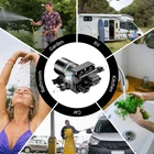 【Excellent Performance】 This rv water pump with 5 chambers self-prims up to 9.8 vertical feet and has a head of up to 155 feet. It has a huge water capacity of 6 gallons per minute and can connect up to 6 faucets at once for all your water needs. 【Smart Pressure Switch】 This 12V rv water pump comes with an adjustable pressure switch that allows the pump to start and stop automatically when the faucet is turned on and off for easier operation. And you can adjust the flow rate between 15-70psi according your needs. 【Overloading&Overheating】 The water pump 12 volt has a built-in thermal and overload protection device that automatically stops the pump when the motor is overheated or over-voltage. When the motor surface temperature drops to a tolerable range, it will automatically restart. In addition, it can run dry for a short period of time. 【High Quality】 The rv fresh water pump is equipped with 100% all-copper motor and anti-vibration iron plate mounting feet that effectively reducing the running noise. The surface of the iron plate is galvanized with anti-rust treatment, which is highly resistant to rust and corrosion even in humid environments. 【Wide Application】 With its low power consumption and high performance, water diaphragm pump can be widely used in garden, yacht, RV, home, agricultural irrigation, car washes or other pressurized pumping applications.