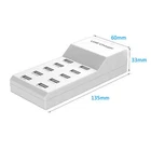 Main Parameters 1. Dc input: 5V AC input: 110-240V 2. Output: 5V 1000mA / 2400mA 3. Power: 5V-50W 4. The white 5. Built-in safety tube 6. Integrated IC control circuit, including overload, over-voltage, over-current, short-circuit protection, over-temperature protection, etc 7. Double USB interface output 8. CE, FCC, certification 9. It is suitable for most mobile phones, tablets, MP3, PDA, Bluetooth headset, PSP, digital camera, navigator, quick charge tablet PC, etc 10. The shell is made of PC+ABS fire-resistant material, environmentally friendly material and surface highlighting treatment. 11. Exquisite design, easy to carry, travel rechargeable plug Product features 1, suitable for all kinds of mobile phones, MP3, MP4, camera, iPod, Iphone series...To produce products such as 2, including timely guard against overload and output short circuit protection measures, so that the product is safer, so that you feel at ease Ii. Product specifications 1. Input voltage: AC100-240V 50/60Hz 2. Output: DC 5V/10A (5-port USB, maximum support for single port 2.4a, it is recommended to use within 8A on A regular basis) 3. Line length: 1.2m 7. Material: fire-retardant ABS+PVC material 8. Color: white Usage 1. Before use, please check whether the charger corresponds to the device parameters. 2. Insert the power cord into AC100-240V. 3. Connect the USB A common pair plug (different plugs for each device) with the adapter to the charger output terminal, and then connect the corresponding plug Electrical equipment (such as mobile phone, MP3, camera, iPod series, etc.) for power supply or charging Package included: 1*10-Port Multi USB Charger