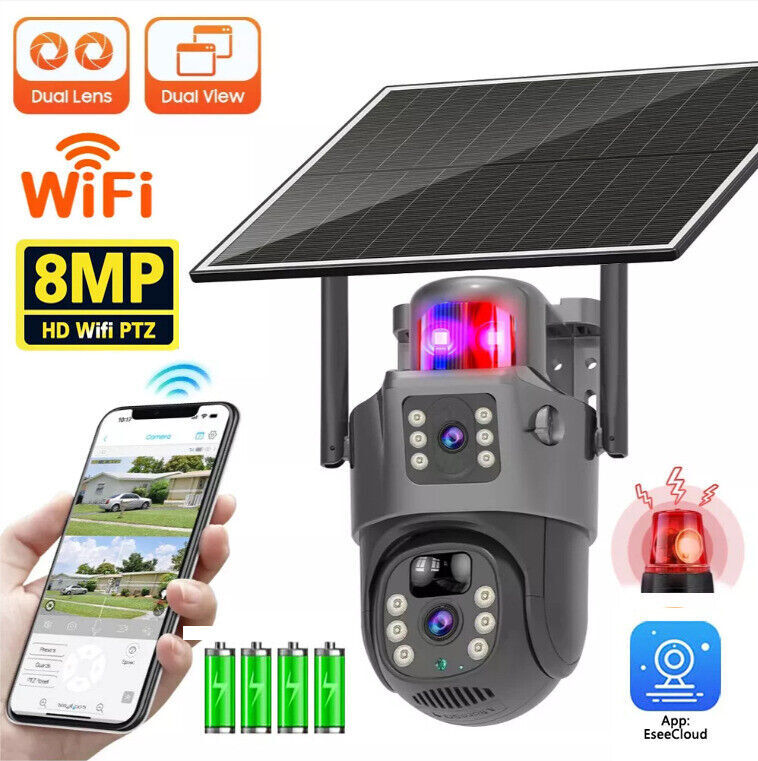 You may also like TAC 2 in 1 Hunting LED Rifle Flashlight & Green Laser Sight Combo For 20mm Rail 35.99 USD Free shipping 1000Miles Green Laser Pointer Pen USB Rechargeable Visible Beam Light Lazer 6.99 USD Free shipping 5mW Adjustable Blue BLaser Pointer Visible Dot Torch Light 37.99 USD Free shipping Red Laser Pointer Red Light Visible Beam Lazer Rechargeable USB Rechargeable 5.99 USD Free shipping Tactical 45 Degree Offset 1" Scope Ring Flashlight Picatinny Light Laser Mount 7.99 USD Free shipping Tactical Red Laser Beam Dot Sight Scope For Rail Weaver 8.88 USD Free shipping Tactical Mini Red Dot RMR Reflex Sight Scope for Glock 17 19 W/20mm Mount 29.88 USD 1.99 USD 14250 CR2 Battery 280mAh Li-ion 3.7V Rechargeable Batteries For Laser Light 3.59 USD Free shipping 2 MOA Shake Awake Red Dot Sight Scope for 1x20mm Sig Sauer Romeo5 SOR52001 M1913 50.99 USD Free shipping US STOCK compact 4X32 Compact Scope 223/ 308/ Crossbow Scope /w Rings With Clip 26.99 USD Free shipping 1000M USB Rechargeable 1mW Green Laser Pointer Pen Visible Beam Light Lazer US 5.99 USD 3.67 USD 3 Slots 1" Scope Riser Mount Fit 20mm Picatinny Rail for Optics Red Dot Sight 7.89 USD 1.99 USD Set of Bike Turn Signals Light Tail Rear w/ Smart Wireless Remote Control USB 14.89 USD Free shipping Tactical Rail Red dot Scope Sight Polymer Base Mount for Glock G17 G19 11.89 USD Free shipping Tactical Green/Red Laser Lazer Beam Dot Sight Scope Mount Rifle Hunt# 8.88 USD Free shipping 2000Miles Rechargeable Lazer Red Laser Pointer Pen Astronomy Visible Beam Light 12.59 USD Free shipping 11mm Dovetail to 20mm Rifle Base Scope Mount /20mm Extend Picatinny Rail Adapter 5.99 USD Free shipping Universal Barrel Clamp for Shotgun Rifle Flashlight Scope Tube Gun Mount Adapter 8.99 USD Free shipping Product Description Solar Security Dual Lens Camera Outdoor Home 8MP Wifi Wireless IP Cam PTZ CCTV Features: Dual Lnes dual screen preview The app for this camera has 2 video screens, one for the fixed position camera and the other for the PTZ camera. 8MP HD Resolution Image and Video The camera provides two kinds of pixels, 8MP, built-in CMOS sensor, good imaging, clearer recording, 8MP has a better HD degree. 7.5W Solar Panel, Efficient Solar Charging When the security camera connected to 7.5W solar panel to work, the battery can last 365 days, also works even with sunlight. The solar panel can provide non-stop power for the outdoor camera. Please make the sure the solar panel is connected well with the battery camera, the connector should be covered carefully. 10800mAh Rechargeable Battery 10800mAh Rechargeable Battery & 100% power wire-free. Beside, the solar panel can provide non-stop solar power for the outdoor camera day or night, sunny or rainy. With rechargeable battery, it allows you no need any annoying wires for the ptz outdoor camera. 100% wire-free. Low battery notification and indicator on the WiFi security camera. PTZ Remote Control On The Phone You can easily control the PT camera to rotate 360° horizontally and 90° vertically to cover every angle of your house. Just with only a mobile phone, you can Remotely monitor the whole front door or store via this WiFi camera. Human Detection and Alerts With Human Detection technology, this ip camera analyzes visitor's body shape and identify human or animal or static object immediately. This smart home camera will capture the human's abnormal movements. Color Night Vision CCTV IP Camera See everything in detail in day&night, with 8 megapixels CMOS sensor.This security camera has 3 modes of night vison: Color, IR, auto night vision. Clear Two-Way Audio & Audio Record This IP camera with built-in enhanced microphone and speaker, you can warn off thieves, screen visitors at your door or communicate directly with your family or friends. Protecting your family and property from harm just by your phone app. Give you peace of mind and 24-hour security protection. WIFI Version - High Speed Wireless Connection With the built-in WiFi module, camera can easily connect to your home network to realize fast data transmission and interconnection functions. Regardless of the application scenario, as long as it is within the coverage of WIFI, the WIFI version will provide you with an excellent experience. ( Only supports 2.4G WIFI, not 5G WIFI ). IP65 Waterproof This WiFi camera shell is made of high-quality engineering plastic materials, with IP65 excellent weatherproof performance, waterproof, sunscreen, dustproof. It can meet most usage scenarios. Support TF Card And Cloud Storage The surveillance camera support 128G TF card ( not included ) and cloud storage. When the camera detect motion dection, it would active quickly and record video, save in sd card or cloud. H.265 Storage Provides faster and more efficient storage speed, while the storage volume will be smaller, reducing screen tearing and allowing recorded video to be stored intact for longer periods of time. Remote control Remotely view your home on phone app ( APP: EseeCloud ). This ip camera will monitor continuous 24 hour per day. When you are on vacation, you will never be worried about your home security. Work with Alexa This WiFi IP camera can works with Alexa. You may use hands-free voice control to seewhat is happening in front of the camera lens. Alexa will automatically give you friendly responses. Packing List: 1x Solar Camera 1x Solar Panel 1x User Manual 1x Screws Bag Payment Shipping Terms Returns Contact Us About Taxes 1. We accept payment via PAYPAL ONLY . 2. Payment must be made within 4 days of auction closing. (Non-payment may result in a UPI (Unpaid Item) being put on your account. eBay will automatically close your account if you accumulate 4 UPI's total.) 3. TOTAL AMOUNT DUE includes the final auction price plus S&H(Shipping and Handling). 4.S&H will be determined based upon the SHIP TO address, Tax and customs. PLEASE NOTE: S&H DOES NOT INCLUDE DUTIES, LOCATL TAXES OR ANY OTHER IMPORTATION FEES. We are not respon