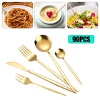 90 Piece Cutlery Set for 18, Stainless Steel Flatware Utensil Kitchen Spoon Fork Description Having a set of exquisite and practical utensils is the dream of every person who loves life because a great utensil set can not only make the meal more enjoyable but also show the style of the family. Our set is made of healthy stainless steel with smooth polished edges to enhance your dining experience. This complete utensil set will serve you well for a long time and does not require individual selection. You deserve to have it! Key Features Robust and Durable: It is made of high-quality stainless steel, which is robust, wear-resistant, rustproof, and corrosion-resistant, ensuring a long service life. Wide Variety of Utensils: The set includes knives, forks, and spoons for the main meal, as well as teaspoons and salad forks. The wide variety of utensil types will allow you to enjoy your meal with great pleasure. Safe to Use : The edges of the utensils are polished smooth to avoid hurting your lips or hands when using the knife or fork, so you can use them with confidence. Exquisite Workmanship: It is manufactured through a series of strictly controlled processes such as sanding, hydraulics, trimming, flat polishing, shaping, and cleaning to ensure good quality. Complete Set: This set contains 5 types of utensils, each of 18 pieces, for a total of 90 pieces, which can be served for large parties or commercial use. Sophisticated Look: Its polished mirror finish and prestigious gold plating make for generous and elegant utensils. It will shine in the light of the dining room and become the most exquisite addition to the table. Easy to Clean: Its smooth surface makes it easy to clean. You can clean it directly with detergent and water and then dry it. Ideal Gift: This sophisticated and practical utensil set is the ideal gift for loved ones, friends, leaders, colleagues, and elders. Guaranteed Customer Service: We aim to provide quality products and services. If you have any problems, please feel free to contact us. We will reply and solve the problem for you as soon as possible. Details Comfortable Handle: The curvature of the long handle is ergonomically designed, and appropriate weight and nice balance are added to ensure a comfortable grip and fatigue-free use over a long period of time. Sharp Dinner Knives: The dinner knives feature a toothed cutting edge to cut through food with ease. The small tip of the knife facilitates precise cutting. Application It is suitable for any family gathering, party, restaurant, hotel, canteen, camping or wedding reception, for residential and commercial use. Specification Material: 410 Stainless Steel Color: Gold Surface Treatment: Electroplated, Polished Mirror Total Number: 90 Packing Size: 25.4*15*4.7cm/10*5.9*1.85in Dinner Knife Length: 22cm/8.6in Dinner Fork Length: 21.5cm/8.4in Dinner Spoon Length: 20.8cm/8.2in Teaspoon Length: 13.1cm/5.1in Salad Fork Length: 13.5cm/5.2in Single Dinner Knife Weight: 40g/0.09lbs Single Dinner Fork Weight: 28.2g/0.06lbs Single Dinner Spoon Weight: 34.7g/0.07lbs Single Teaspoon Weight: 13g/0.03lbs Single Salad Fork Weight: 9g/0.02lbs Gross Weight: 2.3kg/5.07lbs Net Weight: 1.9kg/4.18lbs Package Included 18* Dinner Knives 18* Dinner Forks 18* Dinner Spoons 18* Teaspoons 18* Salad Forks Notes Please be careful not to scrape and wash with hard objects such as wire balls to avoid scratches on the tableware. Please note that it should not be placed in high temperature, strong acid, strong alkali, or solution soaking. After washing the utensils with water, dry them with a cloth and do not place them in a humid and corrosive environment. Please allow the slight color difference caused by the shooting light and 1-3 cm error due to manual measurement, and make sure you do not mind before ordering. Payment Delivery details Terms of sales About us Contact us Payment We accept ebay payment 。 Fees such as import duties, taxes are not included in the item price or shipping costs. These charges are the buyer's responsibility. Delivery details Shipping: 2-9 working days to: USA Terms of sales We maintain high standards of excellence and strive for hundred percent customer satisfaction. Feedback is very important to us. We hope that you contact us immediately before you give neutral or negative feedback, so that we can address your concerns. It is impossible to address issues if we do not know about them! About us Your satis faction is our ultimate goal. We work hard to earn your trust and future business. Our certified technicians have tested each item before shipping. The unit comes with 1 year limited warranty on all manufacturing defects. a) If you receive a defective item, you may return it or ask for a discount. Please contact us within 14 days after you receive the package. b) What you returned must be intact and in its original packaging as re? u. Customer is responsible for shipping costs of the returned item. c) We will cover the cost of shipping back t with the shipping rate indicated in the registration page. We will send you a new unit or refund the full payment you paid. Thank you. Contact us Business Hour Business Hour: Monday To Friday: 8:30 AM to 5:00 PM (Beijing China time) Due to time zones, our reply to your questions may not be immediately. But within above working time, we will reply your email within 24 hours. If it's non-workdays, please kindly be patient and wait till Monday. Please contact us with ebay message. Please feel free to contact us if you have any questions. Monday To Friday: 8:30 AM to 5:00 PM (Beijing China time) Due to time zones, our reply to your questions may not be immediately. But within above working time, we will reply your email within 24 hours. If it's non-workdays, please kindly be patient and wait till Monday. Please contact us with ebay message. Please feel free to contact us if you have any questions.