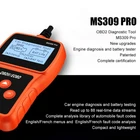 Automotive OBD2 Diagnostic Scanner Car Check Engine Light OBD Code Reader &Fault Feature: Not only car code reader. With 88 live streaming data, this car diagnostic tool also can analyze code. Battery diagnosis. Most of the dignostic tool can only diagnostic engine, MS 309 Pro support battery diagnosis, including Battery Voltage Measurement, Battery Voltage Monitor and battery life. More codes. 3000 common codes and 6000+ codes private codes of different vehicle manufacturer. Support Car Models for OBDII diagnostic function All 1996 and newer cars & trucks that are OBD2 compliant (including CAN protocol) User Manual Pls use your phone Camera to scan the QR on the back of the device, it will open the manual for viewing or downloading. Pls noted, This OBD2 car diagnostic tools can only suitable for 12V Petrol vehicle and never be modified. Specification Product Name:Car OBD2 Code Scanner Model: MS309 Pro Display: 2.4inches Operating Temperature: 0 ~ 60 Centigrade Storage Temperature: - 20 ~ 70 Centigrade Operating Current:50mA~70mA Operating Voltage: 5V ~ 18V Dimensions: 123x 62 x 21mm Languages:Chinese.English.Spanish.French.German.Dutch. Applicable Vehicle:Most Cars Can Be Used Function: -Read Code (View DTCs and their definitions on screen) -Erase Code (Erase DTS with one click, no need to seach online anymore) -Engine Diagnosis (Turn off Check Engine light MIL) -Battery Voltage Measurement (Exclusive Feature) -Battery Voltage Monitor (Exclusive Feature) -Battery Performance Evaluation (Exclusive feature) -Vehicle Information (Vehicle Identification No. (VIN), Calibration ID(s), Calibration -Verification Nos. (CVNs) and In-use Performance Tracking) -Live PCM Data Streaming (retrieve vehicle real time data of Mode 1.) -I/M Readline (Check the operations of the Emission System) -View Freeze Frame Data (Just need several seconds to validate the PID MAP) Packaging included: For Car Truck Hydraulic Clutch One Man Bleeder Kit Brake Fluid Oil Bleeding Tool 21.85 USD 23.5 USD Free shipping 7% off Adjustable Motorcycle Cup Holder Beverage Mount Drink Water Bottle for ATV Bike 12.08 USD 12.99 USD Free shipping 7% off Motorcycle Accessories Oxford Cloth Leg Bag Hip Thigh Pack Waist Pouch Travel 23.25 USD 25.0 USD Free shipping 7% off 360° Car Rear View Mirror Mount Holder Stand for Apple iPhone Android Phone 17.57 USD 18.89 USD Free shipping 7% off 1x3x Black CarCarbon Fiber License Plate Frame Cover Front & Rear Universal Size 7.43 USD 7.99 USD Free shipping 7% off 2024 OBD2 Scanner Code Reader OBDII Check Engine Car Diagnostic Tool W/Bluetooth 47.34 USD 50.9 USD Free shipping 7% off Motorcycle Handgrips Pro Taper Hand Grip Handle Bar ATV Dirt Bike Universal 7/8" 13.01 USD 13.99 USD Free shipping 7% off