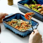【GOOD SIZE FOR DAILY USE】: The baking set includes 3 pieces bakewares of difference dimensions ( excludes the ears' size): 13.5"L x 9.3"W x 2.8"H and 11"L x 7.7"W x 2.6"H and 8"L x 6"W x 2.5"H, suitable for lasagna, spaghetti, chicken, meat, beef, roasting, vegetables, storing and reheating leftovers and etc. 【REACTIVE GLAZE】: The bakeware set features unique reactive glaze color for enjoyable baking time. Remarkable display can be a charming decoration even an artwork in your dining table and kitchen. 【SAFETY UNDER HIGH TEMPERATURE】: These baking pans are made of durable, high temperature stoneware, oven safe to 500°F. It can be used in the oven, microwave, refrigerator and dishwasher. NOTE: No direct fire and induction cooker. 【LONG LASTING COLOR AND SCRATCH RESISTANT】: These dishes are made of high quality and Eco-friendly glaze, totally LEAD-FREE and NON-TOXIC. Extremely hard glaze does not scratch and durable for everyday use, ideal in the kitchen for making delicious meals and desserts. 【EASY CLEANUP】: Nonstick and smooth glaze resists sticking or flaking, easy to clean with dishwasher or hand wash with soap and water.