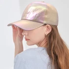 Baseball Cap for Women Men Shiny PU Leather Sun Hats Adjustable Hip Laser Beige