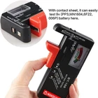 Welcome to Kumbala eBay Store Description: - 100% Brand New - Portable handheld design, perfect companion for travel - Test the capacity of your battery in seconds - Double easy-to-read color-coded scales indelicate power level - One movable arm to accommodate the battery - Two buttons on the side for testing 9 volt batteries - Test different sizes of batteries in only one unit - Used to test the following sizes: - 1.5V: AAA, HP16, MN2400, R03 - AA, HP7, MN1500, UM3 - C, HP11, MN1400, SP11, LR14, UM2 - D, HP2, MN1300, SP2, R20,UM1 - 9V: PP3, MN1604, 6F22, 006P Included in this package: - 1X Universal Battery Tester Warranty & Customer Service : 30 days money back 60 days seller's guarantee, 24 Hours friendly customer service!