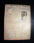 Best DETROIT LIONS Very 1st NFL Football Game Franchise History 1934 Newspaper Offered is an original, collectible newspaper (NOT a copy/reproduction): THE DETROIT FREE PRESS, Sept. 24, 1934 * Detroit Lions very 1st football game * NFL - National Football League * In a Detroit publication (very rare) The front page of the sport's section (pg. 13) has a four column heading: "Lions Defeat Giants in Opener, 9-0" with subheads and related photo. (see images) Also includes stats and lineups. First report coverage continues on page 20 with lineups. Some spine wear causes some text loss here. A related photo is at the top of page 18. Great to have this this Detroit publication. I suspect this to be an extremely rare item because their was really no reason to save it at the time. Twenty pages, some heavy margin wear and chipping, especially along the right margin but doesn't affect the Lions reporting, should be handled with care. wikipedia notes: The 1934 Detroit Lions season was the fifth in franchise history and the first in Detroit; the franchise had previously played as the Portsmouth Spartans in Portsmouth, Ohio, a city with a population of approximately 40,000. Under head coach Potsy Clark, the Lions won their first ten games (of which the first seven were shutouts) then lost three straight in an eight-day span to end the season at 10–3. They finished in second place in the NFL Western Division, three games behind the undefeated Chicago Bears. Please Note: All of our offerings are 100% authentic! We do not offer reprints or reproductions of any kind. They are guaranteed to be original! Links to Archival Storage Options & Certificates of Authenticity Are Below! Historical reports may be beautiful or ugly, but they are always informative. While we rejoice in the beautiful (heroic, discovery, amazing feats, etc.), we at History's Newsstand also offer "the ugly" for we are determined to learn from the wrongs of the past - understanding, to do so, we must be willing to look these wrongs directly in the face and shout "NO MORE!". It is for this reason many Black Americans collect historic slave ads, Jews collect reports regarding the Holocaust, women collect coverage of the Women's Suffrage Movement, etc.. If you find any to be offensive, we agree! Hopefully this is an indication we are moving in the right direction. Domestic Shipping Policy... For this specific item, A U.S. winner pays $10.00 S&H. If multiple items are purchased and paid for simultaneously , the S&H will be calculated by using the highest item's S&H as the base cost , and then adding a small amount for each additional newspaper. The per-item additional cost for newspapers, folders, portfolios, and presentation cases vary according to size and weight. All U.S. orders include in-house insurance at no additional cost to the buyer and include delivery confirmation. All orders include tracking & delivery confirmation. Orders ship within 24 business hours of receiving payment. Some small items may be shipped 1st Class. We will still provide tracking and insure them at our expense. Combined Shipping Notice If the automated eBay checkout process does not properly combine shipping, we will refund overages automatically. If you prefer, contact us prior to payment to obtain a revised invoice. International S&H Policy... If the S&H to your location is not given, international buyers/winners should contact us for an invoice which includes S&H . Import duties, taxes, VAT. etc. are not included in our quoted S&H. These charges are the buyer’s responsibility. Note: We will not falsify customs declarations or mark an item as a "gift" in order to avoid customs fees. If insurance is desired, be in touch for a quote. All insured orders are subject to customs, duties, & taxes for the amount insured and are the buyer's responsibility. International purchasers are encouraged to take advantage of our combined shipping policy to lower the cost per item S&H. If you wish to take advantage of combined shipping, please do not pay for any until you are finished - and then contact us for a combined invoice. If You Are Unhappy With Your Order We make every effort to provide the best possible buying experience. If we fall short of your expectations in any way, please contact us so we can try to make things right for you. Archival Storage... ...is available for an additional $15.00, plus an appropriate adjustment to S&H (see above Shipping Policy). If desired, purchase this directly (through eBay) at: archival storage folder . Again, to insure you will receive the appropriately sized folder for your item, please select the $15.00 folder option. Certificate of Authenticity... A certificate of authenticity is also available for an additional $3.00, which includes both the issue date and title, and certifies, by Timothy Hughes Rare & Early Newspapers, the issue to be authentic & original. If desired, purchase this directly (through eBay) at: certificate of authenticity . About Us... Contact Information... We have been both collectors and dealers in rare newspapers since 1975, serve as consultants to multiple museums, and are members of both the Ephemera Society of America and the American Antiquarian Society. Bid & Buy with confidence knowing every item we offer is guaranteed to be authentic. Timothy Hughes Rare Newspapers P.O. Box 3636 Williamsport, PA 17701-8636 Hours: M-F, 7:30-4:00 EST View our additional ebay offerings "...desiring to conduct ourselves honorably in all things." Heb. 13:18 In an effort to honor eBay's policies and our loyal customers who watch our listings, we do not end auction items early. We hope you understand! " Were it left to me to decide whether we should have a government without newspapers, or newspapers without a government, I should not hesitate a moment to prefer the latter." Thomas Jefferson