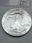 This is a 1998 American Silver Eagle coin, minted by the U.S. Mint in Philadelphia. It contains 1 troy ounce of .999 fine silver and has a denomination of $1. The coin is uncirculated and has not been certified. This particular date is considered a better date for collectors.