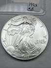 This is a 1998 American Silver Eagle coin minted by the U.S. Mint in Philadelphia. It contains 1 troy ounce of .999 fine silver. The coin features a striking business strike type and is in uncirculated condition. It has a denomination of $1 and is part of the American Eagle series. This coin is a better date variant and is uncertified.