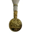 The British Royal Artillery Officers' Busby Grenade Badge with Hackle is an emblem of prestige and rich military heritage. This distinctive badge, crafted in detailed metalwork, represents the elite British Royal Artillery Officers. It features the iconic grenade design, symbolizing explosive power and historical significance. Often seen adorning the traditional Busby headgear, the badge is further accentuated by a vibrant hackle, adding a striking plume that signifies regimental pride and identity. This decorative piece embodies the honor and bravery of the artillery units, serving as a timeless insignia of their service. Whether displayed as part of a collection or worn in ceremonial dress, the Busby Grenade Badge with Hackle stands as a proud testament to the valor and tradition of the British Royal Artillery.