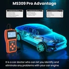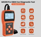 Automotive OBD2 Scanner OBD Code Reader Car Diagnostic Tool Check Engine Fault Specification Product Name:Car OBD2 Code Scanner Model: MS309 Pro Display: 2.4inches Operating Temperature: 0 ~ 60 Centigrade Storage Temperature: - 20 ~ 70 Centigrade Operating Current:50mA~70mA Operating Voltage: 5V ~ 18V Dimensions: 123x 62 x 21mm Languages:Chinese.English.Spanish.French.German.Dutch. Applicable Vehicle:Most Cars Can Be Used Function Read Code (View DTCs and their definitions on screen) Erase Code (Erase DTS with one click, no need to seach online anymore) Engine Diagnosis (Turn off Check Engine light MIL ) Battery Voltage Measurement (Exclusive Feature) Battery Voltage Monitor (Exclusive Feature) Battery Performance Evaluation (Exclusive feature) Vehicle Information (Vehicle Identification No. (VIN), Calibration ID(s), Calibration Verification Nos. (CVNs) and In-use Performance Tracking) Live PCM Data Streaming ( retrieve vehicle real time data of Mode 1. ) I/M Readline (Check the operations of the Emission System) View Freeze Frame Data (Just need several seconds to validate the PID MAP)