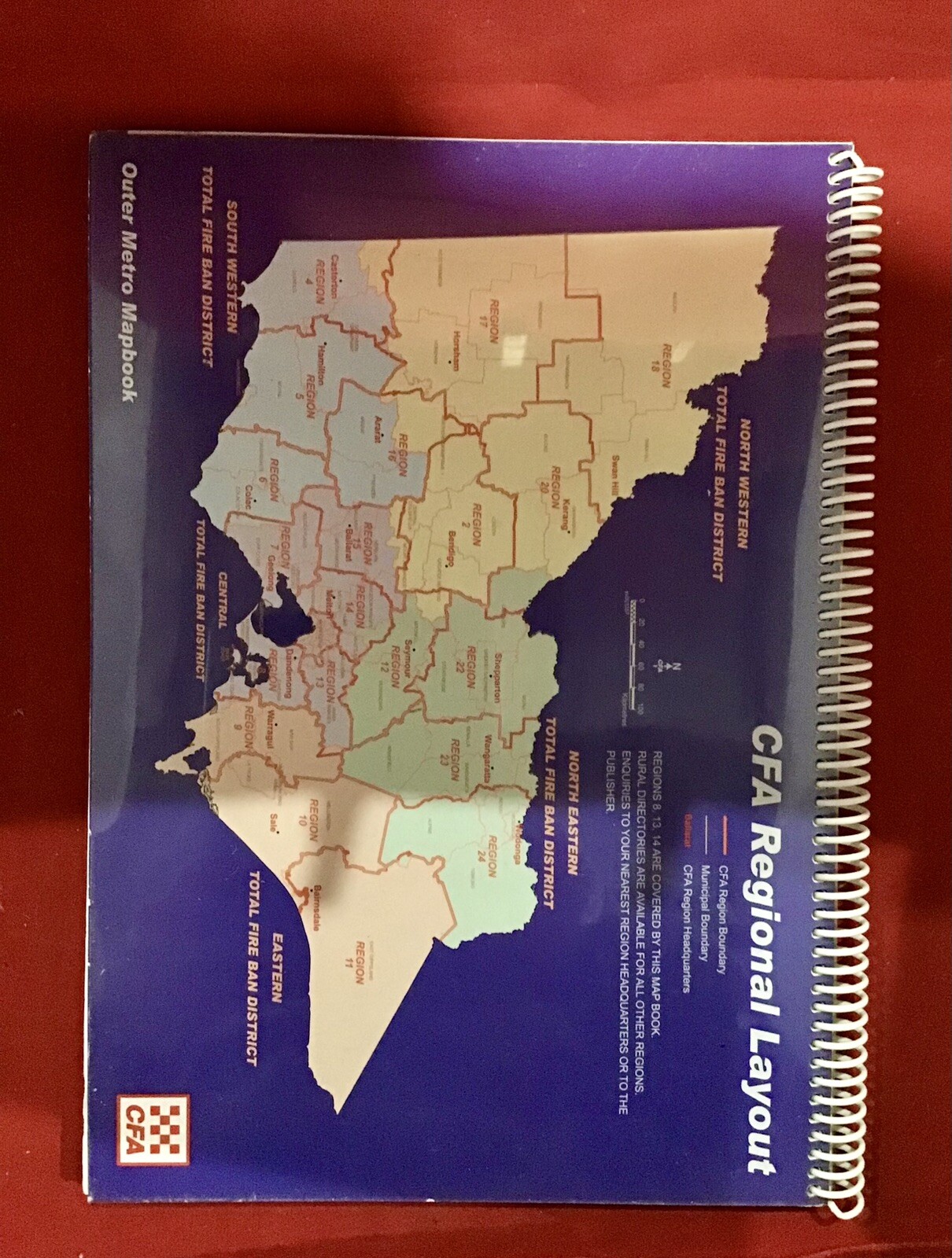 Outer Metro Map Book (OMMB) CFA Map Book Edition 1 March 2005 Victoria Regions 8, 13, 14 Good used condition. Minor detracting marks. No major faults. Pictures are indicative of quality. Pictures are of actual item sent. Lot 201 (office use). Full money back guarantee offered. Includes free return shipping. Buy with Confidence.