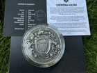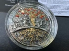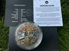 CHERVONA KALINA 2oz High Relief .999 Silver Coin - 2000 Francs CFA 2024 year mint 500 coins At the center of the coin is depicted the eternal source and symbol of life – the Elder tree! The Elder tree is a national symbol of Ukraine. It symbolizes strength, resilience, and independence. Each expressive branch of the tree on the coin reminds us of longevity and strength! Meticulously crafted high relief and attention to detail only further highlight this symbol of eternity. Beside the Elder tree on the coin are depicted Ukrainian people, a mother, child, and a father soldier, symbolizing generations, the unity of the nation, and national identity, which today becomes an invincible force and a source of energy for eternal life. The trunk and roots of the Elder tree are enveloped in eternal noble gold metal, which only enhances the feeling of eternity. Gold seems to envelope and protect the contours of life and hope, separating and leaving all evils underground, depicted beneath the earth on the coin. The gilded branches will light up the bunches of the elder tree – a symbol of glorious Ukraine and the power of faith and unity of the people! Country: Cameroon Year: 2024 Face Value: 2000 francs Metal: Silver Fineness (purity): .999 Weight (g): 62.2 (2 oz) Diameter (mm): 45 Quality: Antique finish + gold plating Mintage (pcs): 500 Certificate (COA): Yes Presentation case (box): Yes
