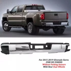 Fitment 2015-2019 Chevrolet Silverado 2500 HD 2015-2019 Chevrolet Silverado 3500 HD 2015-2019 GMC Sierra 2500 HD 2015-2019 GMC Sierra 3500 HD For Dual Rear Wheel (Dually) Models ONLY For Models Without Park Sensors For Use With Factory Tow Hitch (Hitch Plate Not Included) Details Surface Finish:Chrome Material:Steel Includes Reinforcement, Brackets, Hardware, Lamps and Step Pad Direct OE Replacement Package Includes: 1*Rear Bumper Assembly On Dec 12, 2024 at 17:05:25 PST, seller added the following information: On Dec 18, 2024 at 20:03:28 PST, seller added the following information: On Dec 22, 2024 at 18:24:32 PST, seller added the following information: On Dec 22, 2024 at 22:28:55 PST, seller added the following information: