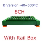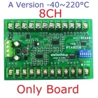 Product Name: 8ch DC 8-30V PT100 RTD RS485 Temperature Sensor Module Modbus RTU Platinum Thermal Resistance Collector -40~500C Packing list: ( Please select the product you need ): 1 PCS PTA8D08 8ch PT100 RS485 Acquisition module Description : PTA8D08 PT100 RS485 Acquisition module Description: Working voltage: DC 8~30V Working current: 14-25MA MODBUS RTU protocol, 03 read command, 06 or 16 write command. Serial port baud rate: 9600 (default), N, 8, 1 By modifying the 485 address, up to 247 modules can be cascaded (more than 16 please use R485 repeater) Can read temperature and PT100 resistance value Adapted sensor: PT100 3-wire or 2-wire sensor Temperature measurement range: A version -40℃ to +220℃; B version -40℃ to +500℃. It is recommended to select a version with a smaller range within the range that meets the measurement. Temperature measurement accuracy: 1%. Size: 136 X 92 X 32MM Weight: 166g MODBUS RTU protocol please refer to : ''PTA8D08 8CH PT100 RS485 sensor protocol'' PT100 sensor specifications(Type A): Type: PT100 Probe Diameter: 6.5mm Probe Length: 30mm Probe Material : Stainless steel Cable Length: 0.5M PTFE sheath 3-Wire type Temperature -200~550°C degree Nominal accuracy : 0.1% PT100 sensor specifications(Type B): Type: PT100 Probe Diameter: 4mm Probe Length: 30mm Probe Material : Stainless steel Cable Length: 0.5M PTFE sheath 3-Wire type Temperature -50~200°C degree Nominal accuracy : 0.3% DIN rail Box parameters: Product model: UM80 Color: Green Width: suitable for PCB board width UM80(80mm) Insulation grade: flame-retardant VO grade Backplane length: suitable for 117 mm PCB boards Net weight: 89g Installation: DIN35 and C45 rail For more information, please contact us!!! Typical application: Thermostatic Controls Industrial Systems Consumer Products Thermally Sensitive Systems Measuring instruments Indoor and outdoor temperature measurement Temperature in vegetable garden Weather forecasting, and monitoring Temperature in Computer Room Warehouse temperature 3-wire probe wiring mode: the red wire is connected to P+, and the other two wires of the same color are connected to P- and GND (the ports are not distinguished). 2-wire probe wiring mode: red wire connects to P+, blue wire connects to P- and G. RS485 bus wiring diagram: