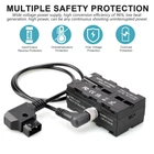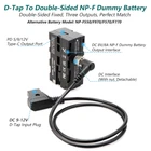 double-sided NP-F series dummy batteries are designed for wireless video transmission and monitor fixed and power supply. Three outputs, convenient for power supply and space saving. The power cable with nut can be disassembled and replaced to meet various needs.The double-sided NP-F dummy battery interface is used for monitor and wireless video transmission, and the Type-C output interface is used to power the , mobile and other devices.The new structure, integrating a variety of functions, protecting the circuit, is lightweight and portable, and extremely convenient. Note: 1:Before purchasing, please pay attention to measuring the depth of the device battery slot. If the depth of the device battery slot is within 7mm, choose a thin version, and if the depth of the device battery slot is between 7-12mm, choose a thicker version. 2: Do not power the . 3: When the input is 9V, the output may only have a normal voltage drop of 7.8V and can be used normally, but TYPE-C has only 5V output. Specification: Name: D-Tap to NP-F Double-sided Dummy Battery D-Tap Input: DC: 9-20V, with anti-reverse polarity protection, input reverse protection. NP-F Interface Output: DC8V 8A (NP-F interfaces share 8A), 64W output power. Type-C Output: support PD 5/9/12V, 36W Product Size:70.8*45.2*27mm (Thin style,without cable) Power Cable Cpecifications: D-Tap to DC55 * 2.5mm male power cable (straight line 23.6inch) Product weight: 90g Alternative battery models: NP-F550/F970/570/770 battery In addition to the accompanying D-Tap to DC55 * 2.5mm male power cable (straight line 60cm), you can also purchase Type-C to DC55 * 2.5mm male coiled cable or D-Tap to DC55 * 2.5mm male coiled cable to be used together. Package Include: 1 x NP-F double-sided dummy battery. 1 x D-Tap to DC55 * 2.5mm male power cable (Straight line 60cm) 【Handy and versatile】D-Tap to Double-sided NP-F Series Dummy Battery, designed for wireless image transmission, monitor power supply and fixation. Monitor and wireless video transmission are fixed on both sides and provide them with a power connection through a V-Mount battery.It keeps your rig compact and reduces the number of batteries/mounts needed to get everything working together. 【Three outputs】With three-way output function, NP-F Dummy battery -sided interface shares 8V8A, 64W output power, can simultaneously power wireless image transmission and monitor. The Type-C output port supports PD 5/9/12V, 36W, which can power the or mobile and other equipment. (Battery not decoded, not suitable for cameras) 【Wide Compatibility】NP-F double-sided Dummy battery,can replace Sony L series NP-F970 NP-F960 NP-F750 NP-F550 battery, can be used for monitor, wireless video transmission, LED light, etc.Before purchasing, please pay attention to measuring the depth of the device battery slot. If the depth of the device battery slot is within 7mm, choose a thin version, and if the depth of the device battery slot is between 7-12mm, choose a thicker version. 【High quality】New structure design, medium frame CNC aluminum alloy material, strong, safe and reliable.The power cable with nut can be disassembled and replaced to meet various needs. The package includes: double-sided fake battery x1, D-Tap to DC55 * 2.5mm male power cable (straight line 60cm) x1. Additionally, you can choose to purchase Type-C to DC55 * 2.5mm male coiled cable or D-Tap to DC55 * 2.5mm male coiled cable. 【Reliable】Built-in input and output reverse, high voltage, overload protection circuit, safer fake battery, can use the equipment safely and securely. Wide voltage power supply, high conversion efficiency of 96%, low heat generation, high power, can be any continuous shooting uninterrupted power.