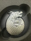 The pictures are the exact product you will receive ! Perfect condition. This exquisite Dragon Egg coin from the Republic of Tchad is a true gem for collectors and investors alike. Crafted with .999 fine silver and a total weight of 2 oz, this coin boasts a stunning antique finish and a high relief design. The egg shape measures 34 x 45 mm in diameter and comes in its original box packaging. This limited edition coin is one of only 500 pieces minted and comes with a Chinese COA for added authenticity. The face value of 10000 Francs CFA adds to its value as a collector's item. Made in France, this coin is a must-have for anyone looking to expand their precious metal collection.
