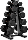 SET INCLUDES – A pair of 5-pound, 10-pound, 15-pound, 20-pound, and 25-pound rubber hex dumbbells with blakc handles and a black A-frame dumbbell rack to store the weights. E-commerge packaging. This set in multiple boxes. SPACE-SAVING DESIGN – The A-frame design of this rack maximizes floor space by storing dumbbells in an “A” shape, or vertical fashion. Easily access and store dumbbells. Rubber inserts prevent dumbbells and rack from scratches DURABLE AND RELIABLE – Rack is made with steel and finished with durable black powder coat. Heads are made from ASTM A48 Class 20 grey iron and joined together by a 1018 cold rolled solid steel handle (sizes 15-120lb) with an extreme durable rubber coating. VERSATILE – Dumbbells offer the ability to target specific muscle groups or perform a full body workout. Perfect for isolations, functional and HIIT workouts, and strength training routines FEATURES – The original hex shaped heads prevent rolling. The medium depth knurling on the handle provides essential grip and security during use. Rubber coating is a durable and effective finish From the manufacturer The video showcases the product in use. The video guides you through product setup. The video compares multiple products. The video shows the product being unpacked. CAP Barbell Dumbbell Set with Rack | Multiple Options in 150lbs Add to Cart Add to Cart Add to Cart Customer Reviews 4.5 out of 5 stars 4,641 4.5 out of 5 stars 4,641 4.5 out of 5 stars 4,641 4.5 out of 5 stars 4,641 Price $160.99 $ 160 . 99 — $160.99 $ 160 . 99 $211.99 $ 211 . 99 Handle Color Chrome Chrome Black Chrome Head Type Hex Hex Hex 12-Sided Comfort Grip ✘ ✔ ✘ ✘ Rack Color Black Black Black Black Dumbbell Sizes Pairs of 5, 10, 15, 20, 25 lbs Pairs of 5, 10, 15, 20, 25 lbs Pairs of 5, 10, 15, 20, 25 lbs Pairs of 5, 10, 15, 20, 25 lbs Multi-Box Shipping: Optimized for Safety and Product Integrity with CAP Barbell When you purchase CAP Barbell products, you can trust that our shipping methods are designed to enhance safety and protect product integrity. We often ship weight products in multiple boxes to ensure that your order arrives in perfect condition. By dividing heavy or bulky items into several manageable packages, we prevent damage during transit and reduce the risk of injury for delivery personnel, who can handle lighter boxes more easily. This approach also allows for better distribution of weight, resulting in faster delivery times. CAP Barbell is committed to providing you with the highest quality products, delivered safely and efficiently. For any questions or concerns - Please reach out to CAP Barbell.