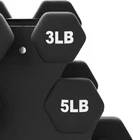 Dumbbells Set: Set of 3 pairs of 3, 5, and 8-pound dumbbells that cater to various fitness levels and training needs, for resistance training and more Built to Last: Crafted from durable cast iron designed for both indoor and outdoor use, ensuring longevity and reliability throughout your fitness journey Enhanced Grip: Neoprene coating provides a comfortable feel and ensures a secure grip, allowing you to focus on your workout without worrying about slippage Stability Ensured: Hexagonal shape allows the weights to stay put and not roll away, providing stability and during your exercises Organized Storage: Included weight stand keeps dumbbells neatly organized and easily accessible (assembly tool included) On Dec 22, 2024 at 17:48:44 PST, seller added the following information: