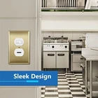 Brass-plated stainless steel provides high-impact resistance; enhances safety by limiting access to wiring due to wall plate breakage associated with nylon and plastic covers Corrosion-resistant material helps extend wall plate life in extreme environments; non-combustible and heat resistant to temperatures over 100 degrees Easy of any wall plate of the same configuration; mid-size dimensions: 4.88" height x 3.11" length Brushed brass finish; premium quality brushed finish with visible brush strokes; soft edges allow for easy cleaning and durable shine Includes matching screws; 1-year
