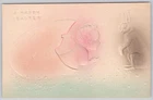 Easter Greetings Divided Back Embossed Postcard Child in Giant Egg Rabbit