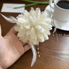 Exquisite French Mesh Feather Corsage Pin Banquet Brooch Jewelry Accessories